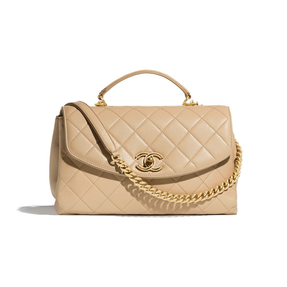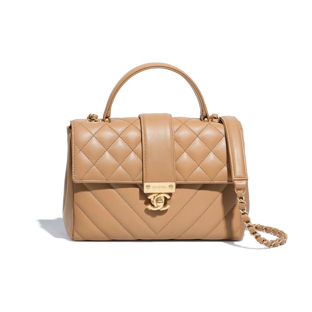 Chanel Flap Bag with Top Handle Calfskin & Gold-Tone Metal Beige (售價(jià)港幣$29,200)
