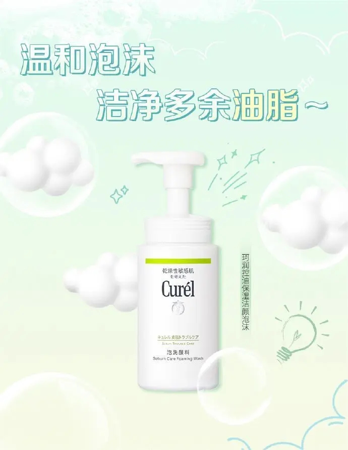 Curél珂潤控油保濕潔顏泡沫,含油脂溶解成分,一按既出的豐富細膩泡沫,充分洗凈毛孔污垢及多余皮脂的同時不會帶走肌膚的滋潤度。保持與健康肌膚PH值相同的弱酸性,溫和守護肌膚自身“神經酰胺”。 洗后水潤不緊繃,保持肌膚水油平衡。