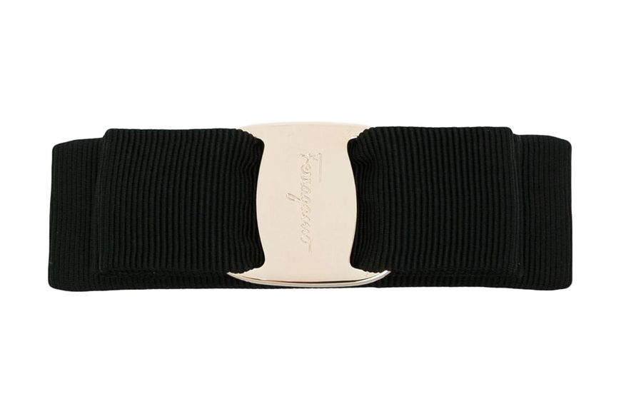 這個Vara 蝴蝶結發(fā)夾,中間的金色裝飾上刻了Ferragamo的手寫標志,黑色和金色的顔色對比,營造出明亮優(yōu)雅的感覺。