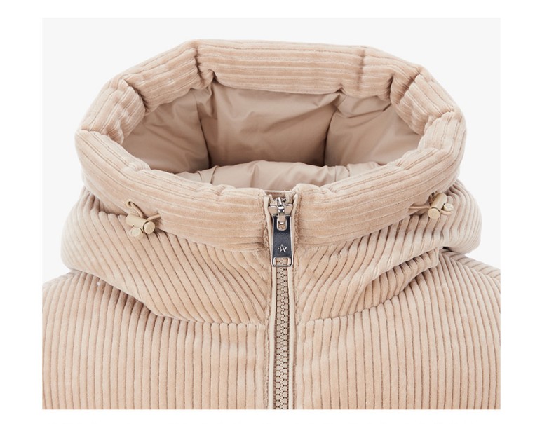 不是普通的鵝毛羽絨服,而是燈芯絨材質面料,給人一種溫暖的感覺。 燈芯絨風格的填充,溫暖舒適,捕捉女性時尚感,為可以有點素色的衣服加分。 有一定的厚度,保暖性很強,而且這次新品還突出了品牌特有的時尚感,使用寬線條燈芯絨代替普通燈芯絨。